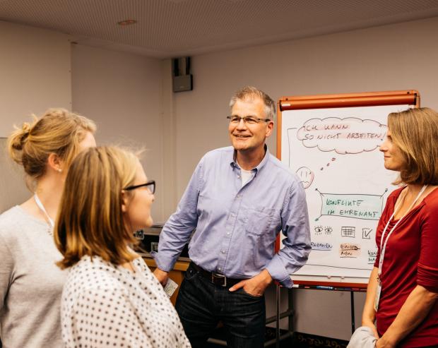 „Zusammenhalt durch Teilhabe" bietet Mitarbeiterinnen und Mitarbeiter der Projekte grundsätzlich die Möglichkeit, sich im Bereich der Demokratieförderung und der Extremismusprävention weiterzubilden.