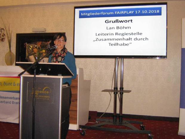 Am 17. und 18. Oktober 2018 lud der Arbeitslosenverband Deutschland/ Landesverband Brandenburg e.V. zu einem Mitgliederforum und dem 14. Landesverbandstag in das Lakeside-Burghotel im Norden Strausbergs ein. Das Mitgliederforum am 17.10. wurde in Zusammenarbeit mit dem verbandsinternen Demokratieförderungsprojekt „Fairplay“ (Bundesprogramm „Zusammenhalt durch Teilhabe“) gestaltet.