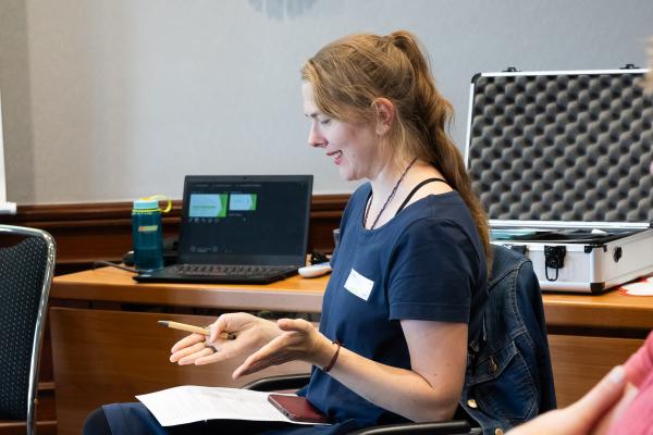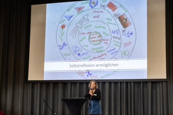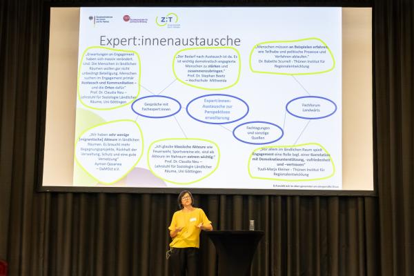 Auf der Tagung stellte Lan Böhm, die Leiterin der Regiestelle Zusammenhalt durch Teilhabe, die aktuellen Entwicklungen des neuen Bundesprogramms ab 2025 vor.