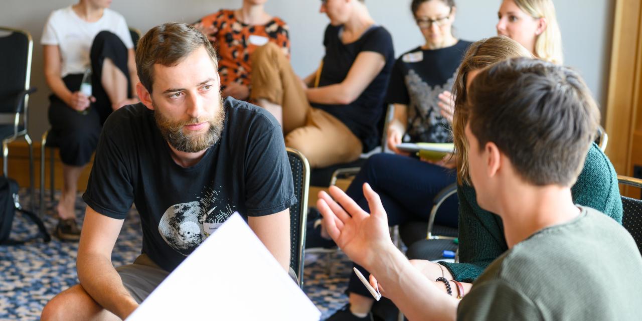 Vertreter/-innen von Team Sport-Bayern e.V., Vertreter/-innen des bayerischen Eissport-Verbands e.V. und ein Referent. Im Allgemeinen finden sich Vereinsmitglieder zusammen, um sich zu beraten und holen gegebenenfalls einen geschulten Experten hinzu.