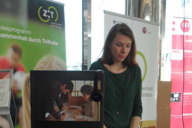 Die Mitarbeiterinnen und Mitarbeiter des Bundesprogramms „Zusammenhalt durch Teilhabe“ (ZdT) stellten an beiden Tagen verschiedene Projekte vor, die im Rahmen von ZdT gefördert werden. Sie verteilten Informationsmaterialien und beantworteten Fragen der interessierten Besucher zu Arbeitsweise, Methoden und Ergebnissen des Programms.