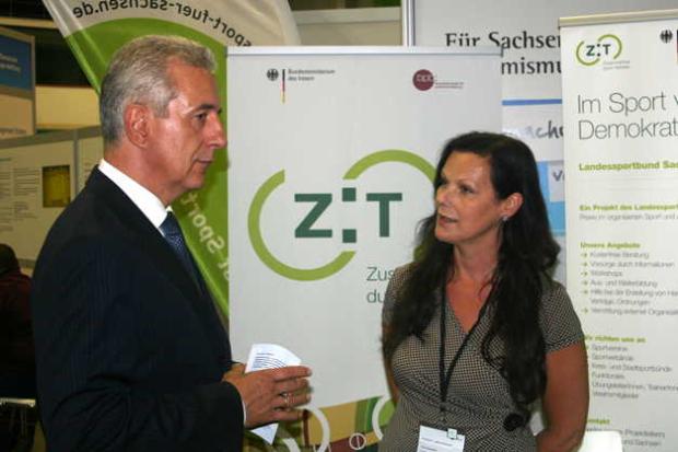 Das Bundesprogramm „Zusammenhalt durch Teilhabe“ stellte gemeinsam mit Nadine Haase vom Landessportbund Sachsen die Ausbildung der Demokratietrainer im Sport vor, die im Rahmen des Bundesprogramms durch das Bundesministerium des Innern gefördert werden. Staatsminister des Innern Markus Ulbig betonte die Bedeutung der Sportvereine für die Extremismusprävention gerade in ländlichen Gebieten. Trotz des Wunsches, dass diese Förderung bestehen bleibt, machte er aber auch deutlich, dass zudem die Kommunen und Gemeinden hier eine Verantwortung tragen: „Die Sportvereine, in denen extremistische Vorfälle passieren, sind naturgemäß in den Städten und Gemeinden verwurzelt. Hier müssen von kommunaler Seite mögliche Sanktionen geprüft werden.“